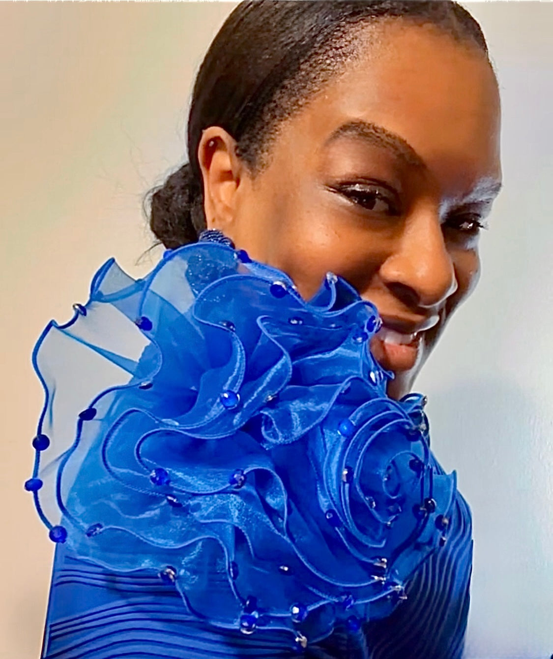 This Royal blue shoulder bomb with rhinestones will definitely enhance any ensemble worn with it. It’s bold personality will have everyone in the room asking where did you get her from! Available in blue, white, black and yellow.